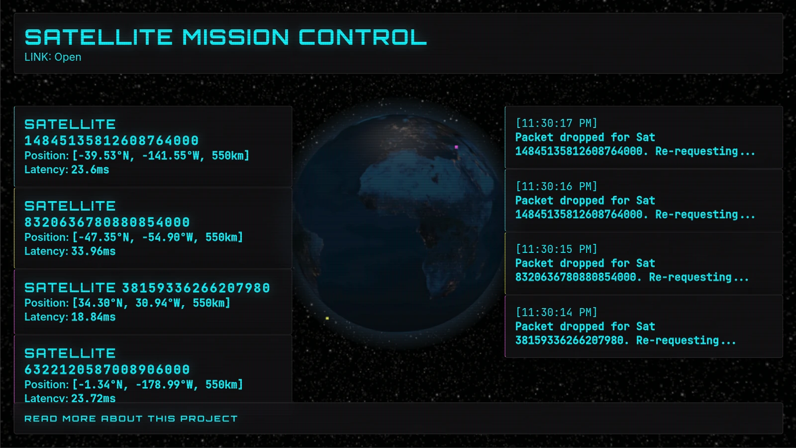 This project was inspired by Starlink. I built it as a way to explore lower-level networking with UDP and to simulate what reliable communication might look like in a real satellite constellation.